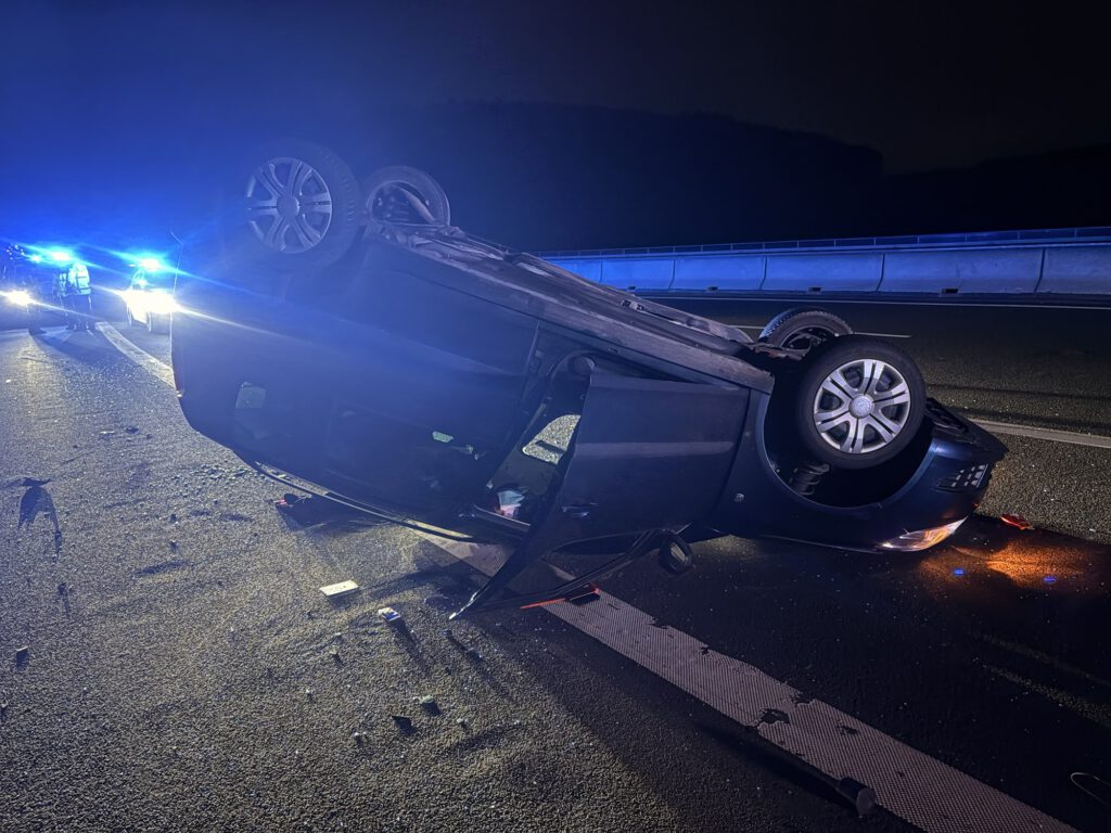 Vor Ort stellte sich heraus, dass sich ein PKW überschlagen hatte. Bei Eintreffen der Feuerwehr waren die beiden Insassen bereits aus dem PKW heraus.
